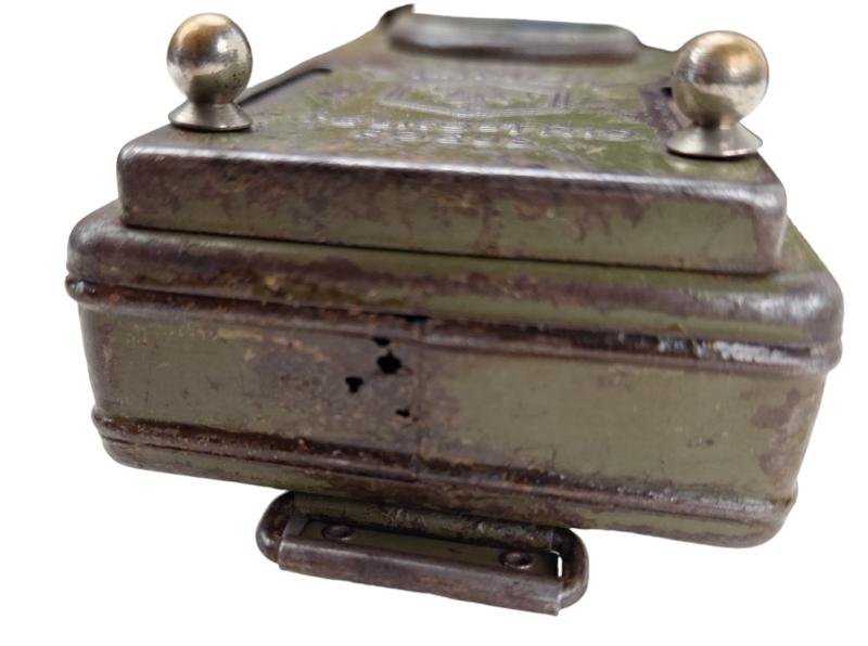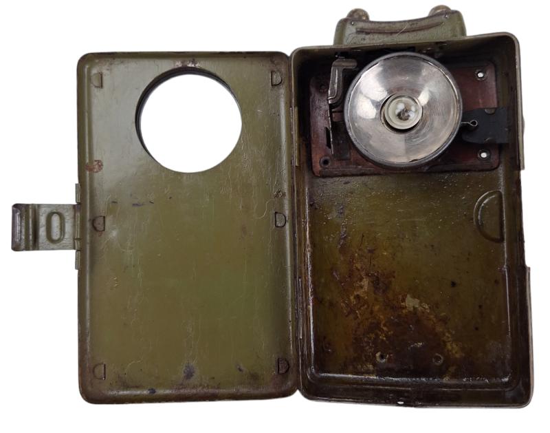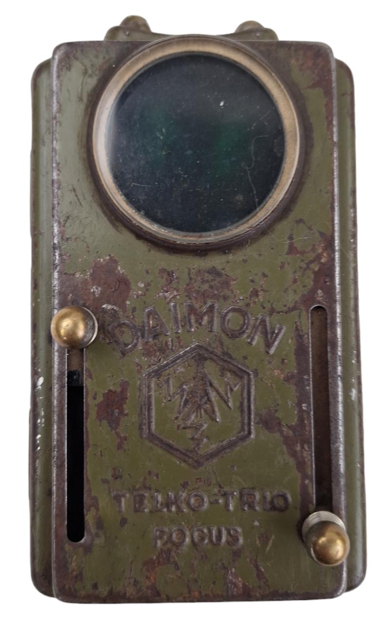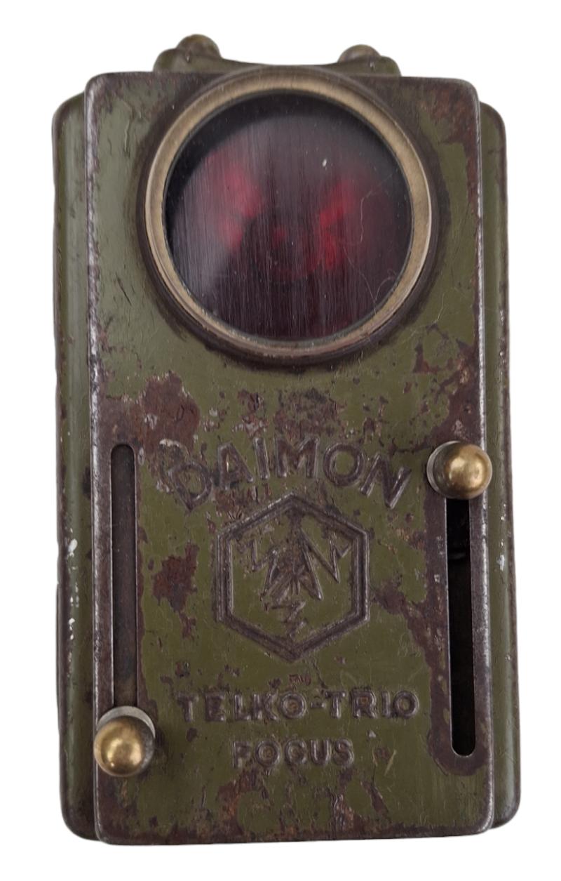 in a very nice used condition A a German WW2 daimon " telko -trio focus" flashlight with their red and green glasses I don't know if it still works, but it still has the light very nice for display