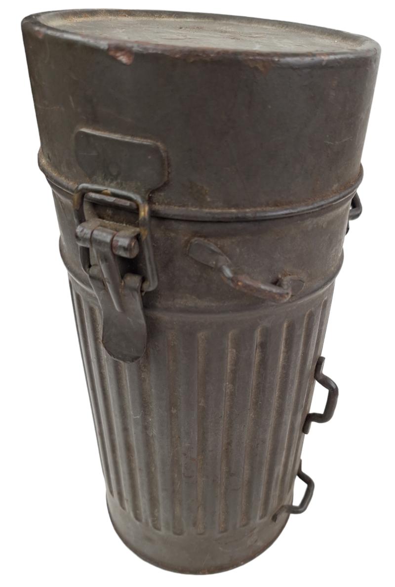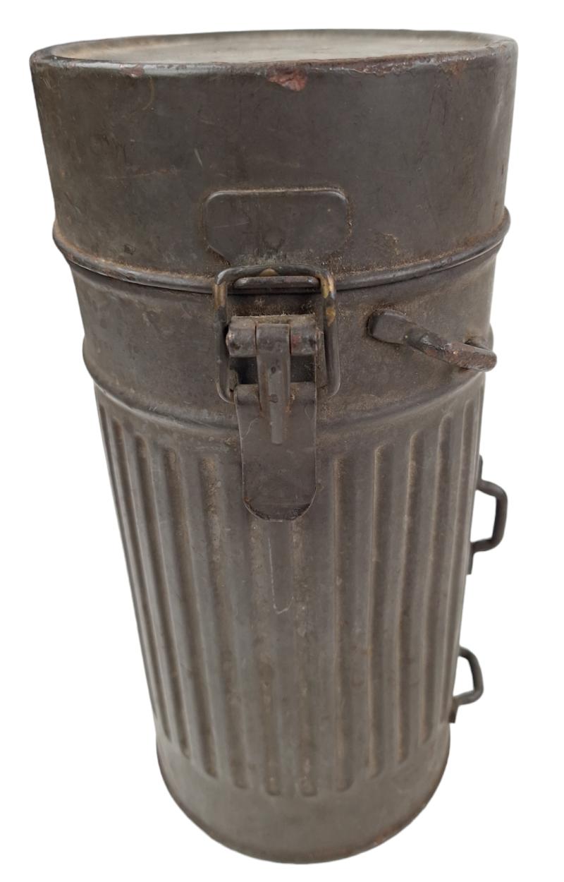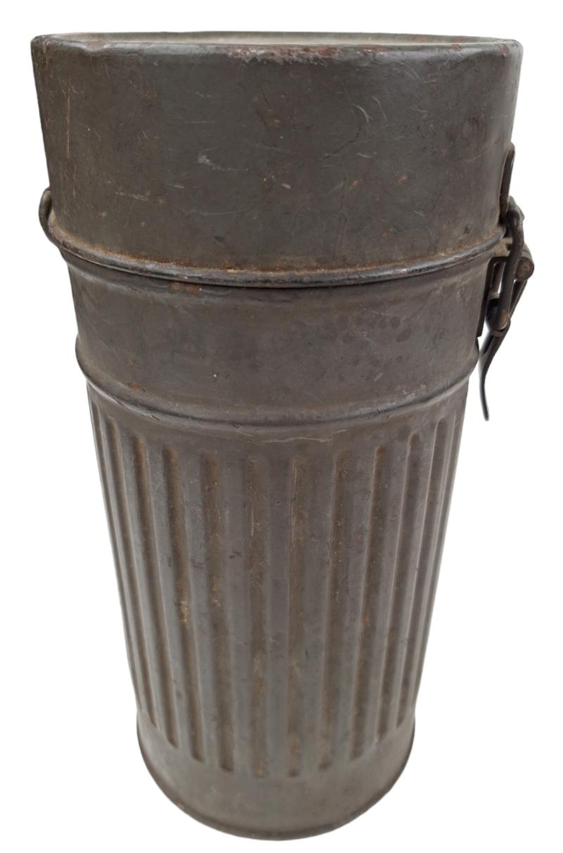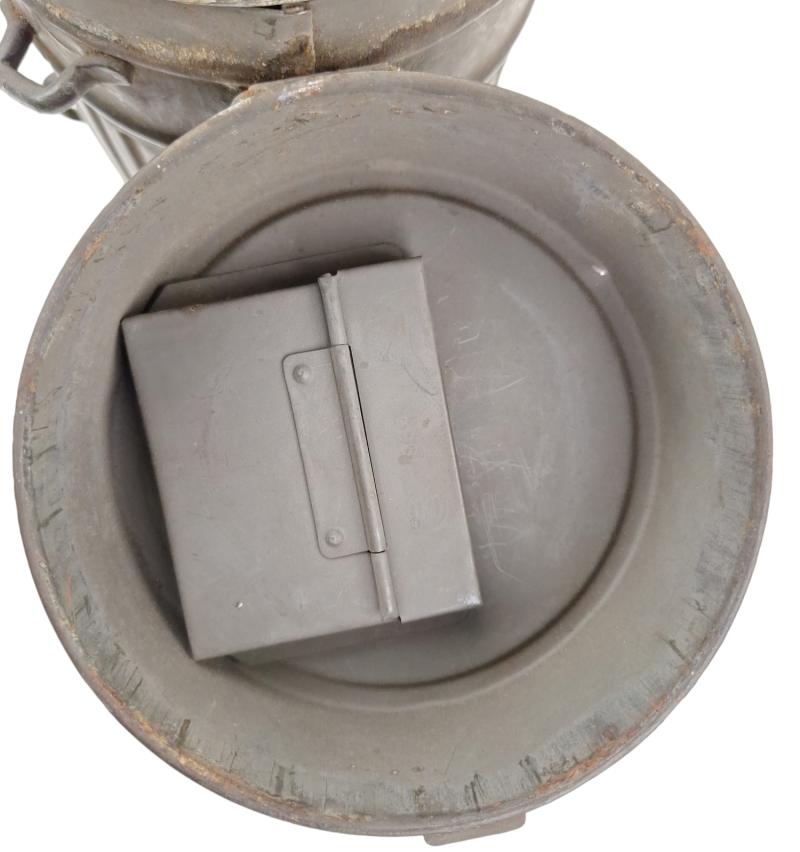 in a very nice used condition a German WW2 shorter gas mask canister dated 1934 and a maker stamp very nice for display