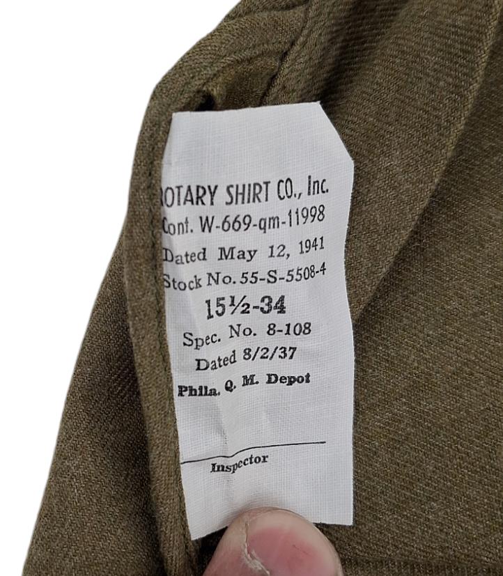 in a mint condition a us ww2 wool shirt with a nice label with a marker and date may 12 1941 in size 15.5/34 in a mint condition