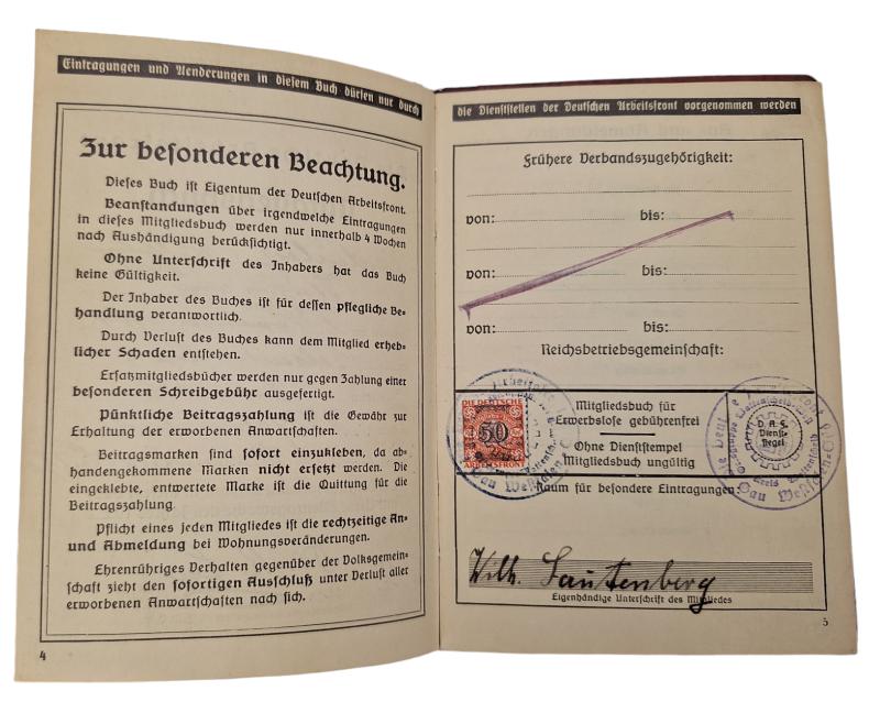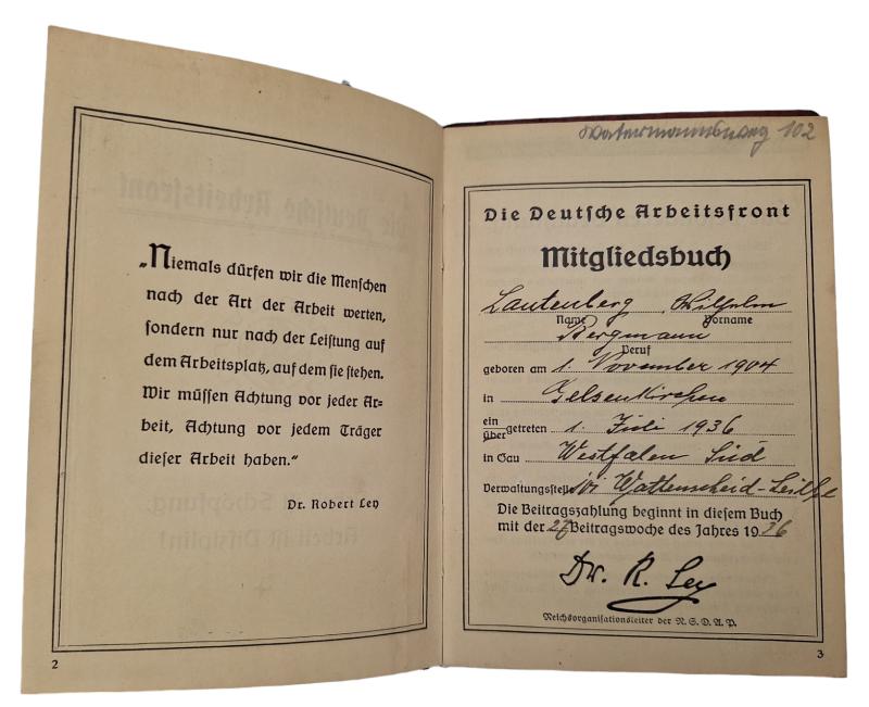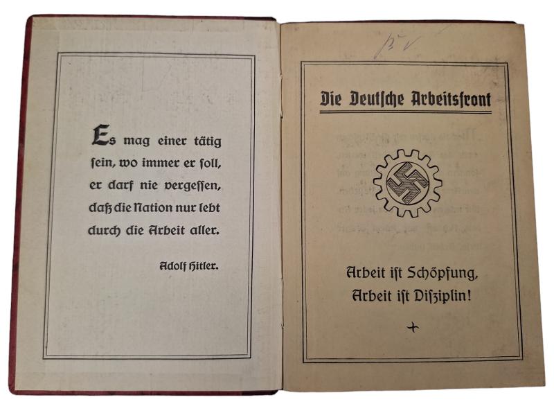 in a nice used condition a German WW2 DAF Book (Deutsche Arbeitsfront) in the name of "Wilhelm Hautenberg " very nice for display