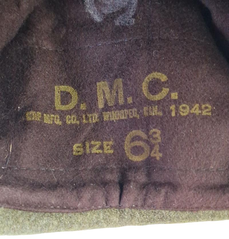 in a very nice used condition a Canadian 1942 cap with Royal Canadian Ordnance Corps badge dated 1942 and beautifully marked with "D.M.C." very nice for display
