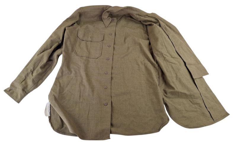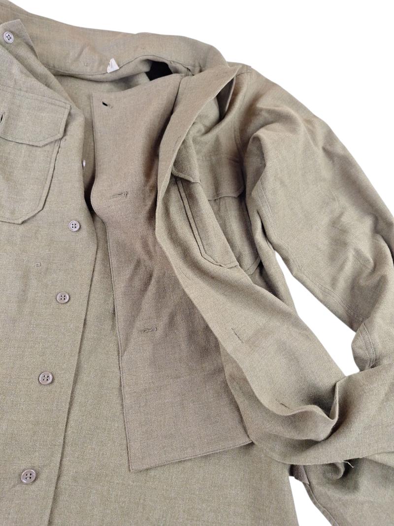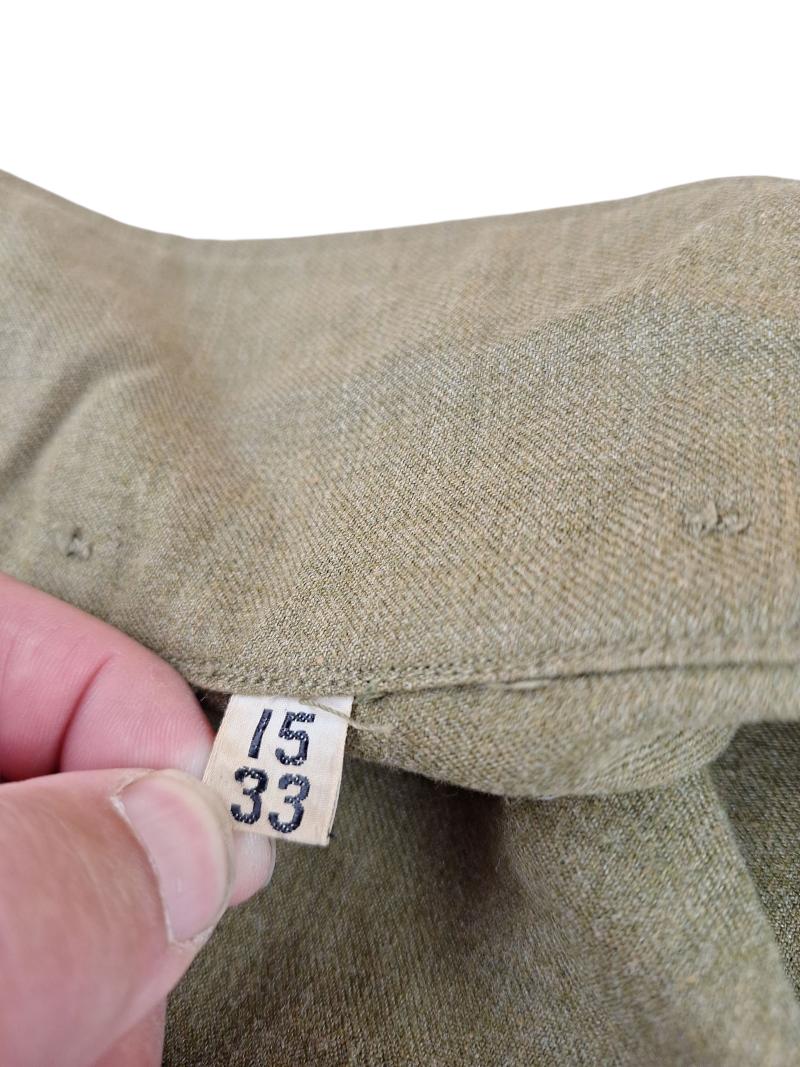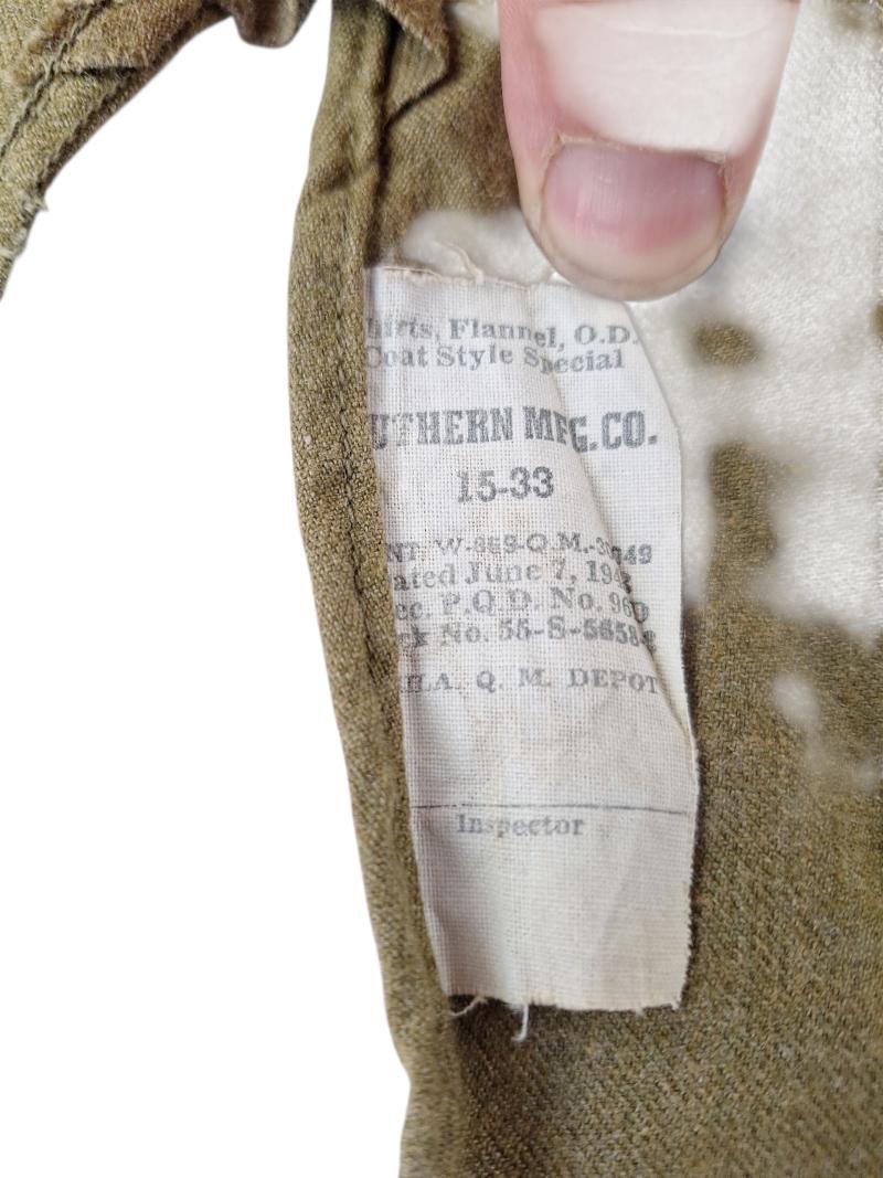 in a used t condition a us ww2 wool shirt with a nice label with a marker with southern mfg co and date june -7 -1943 in size 15/33 in a used condition