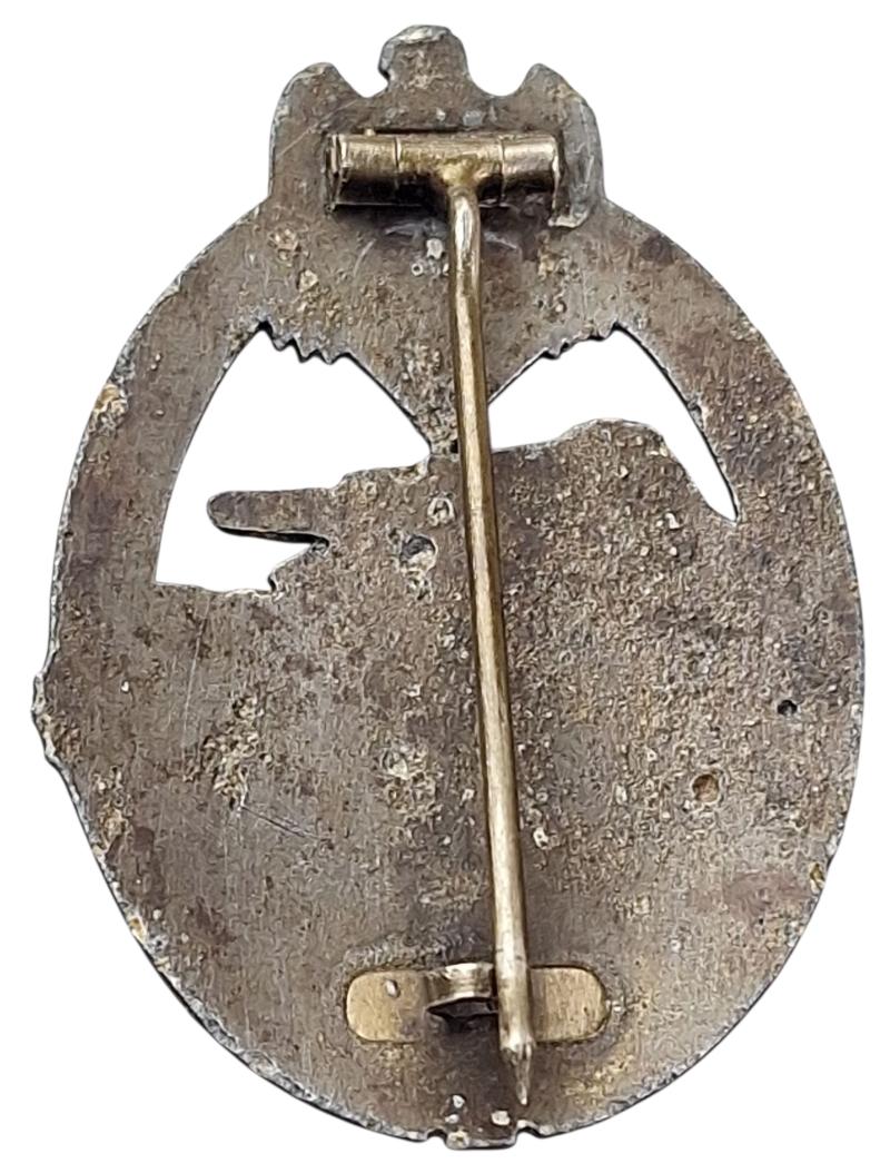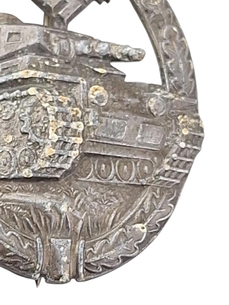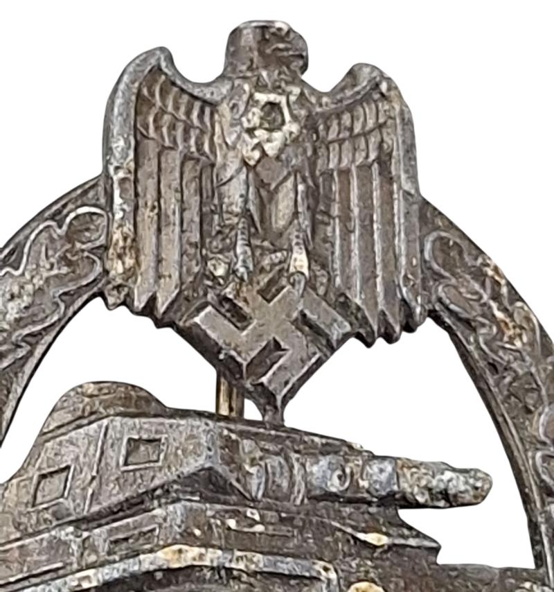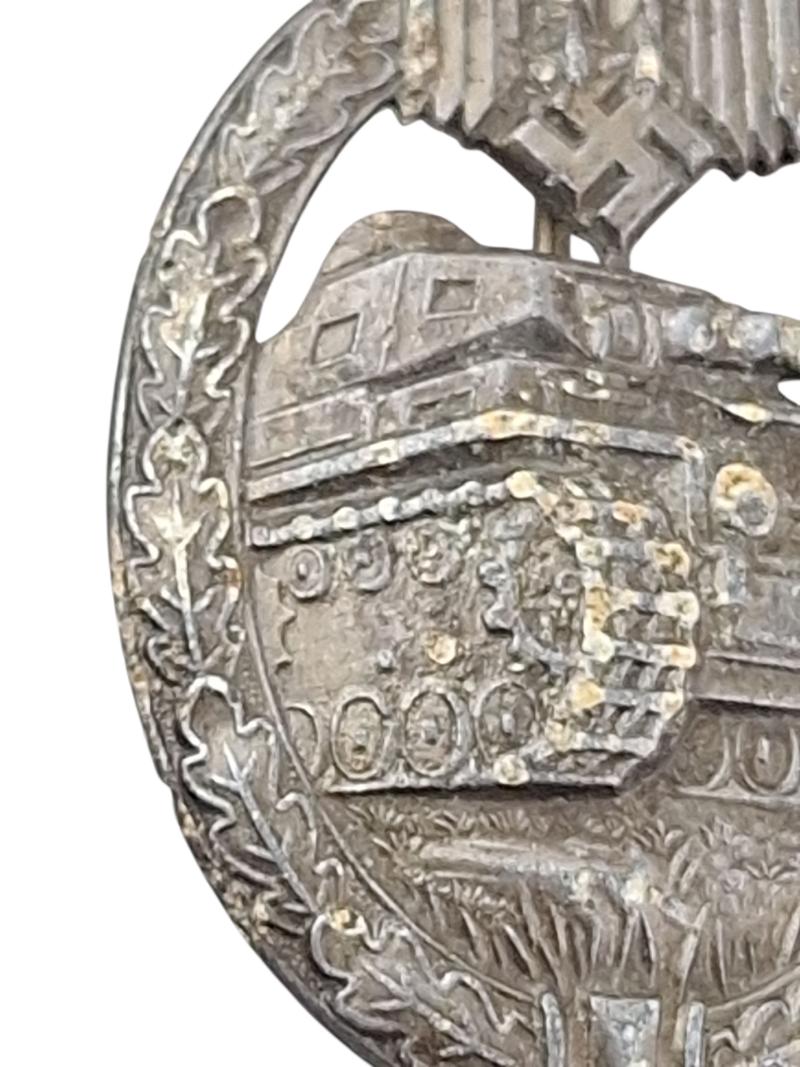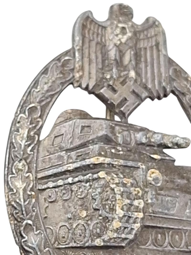 in a heavy used condition a german ww2 panzerkampfabzeichen in silverno marker but it was made by "Fritz Zimmermann nice for display