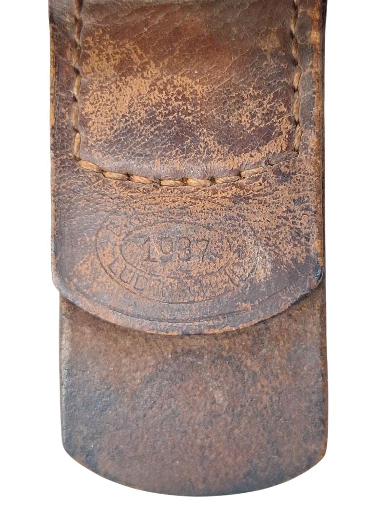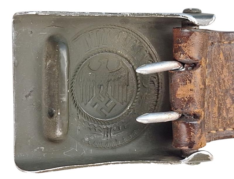 in a nice used condition a rare Wehrmacht belt buckle still 90% in its beautiful green color it is marked on the leather but hard to read the date is a 1937 very nice