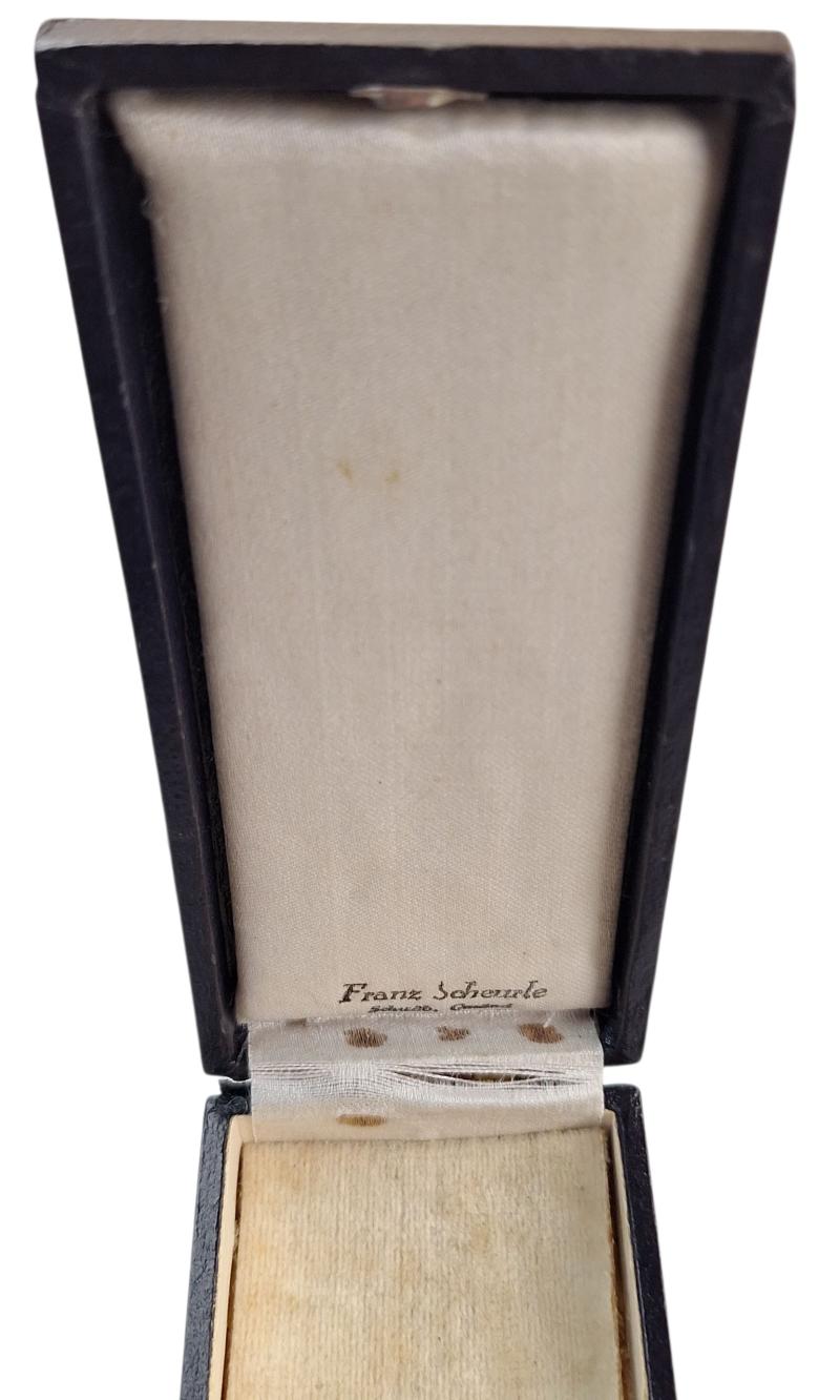 in a nice used condition a german ww2 mother cross in gold in its original box its markerd with (Franze scheurle ) in a beautiful condition