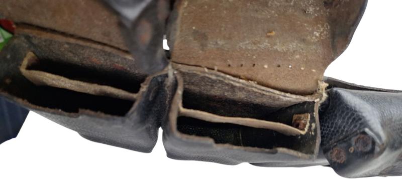 in a nice used condition a wehrmacht k98 ammo pouch .markert with a "Rbnr" all three partition are present the right strap is starting to come loose a little bit very nice for display used condition