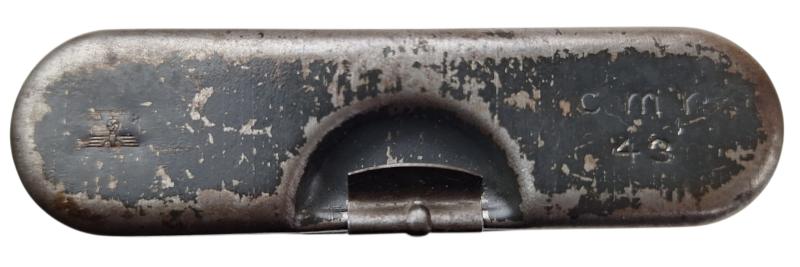 in a very nice used condition a german ww2 k98 cleaning box marked with "C.M.R" and dated 43 present with a nice waffenampt and he the chain has the waffenampt the bottle is a bakalite one no marker present very nice for display