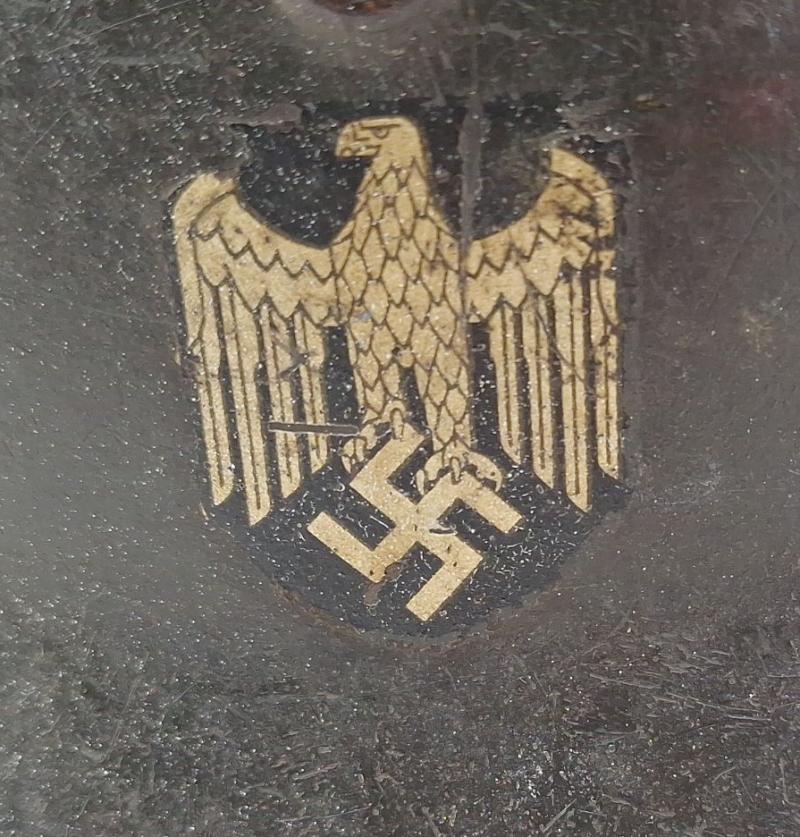 in a used condition a wehrmacht et62 m40 heer helmet the liner has been replaced with. lot number 446 with a very beautiful decal very nice for display