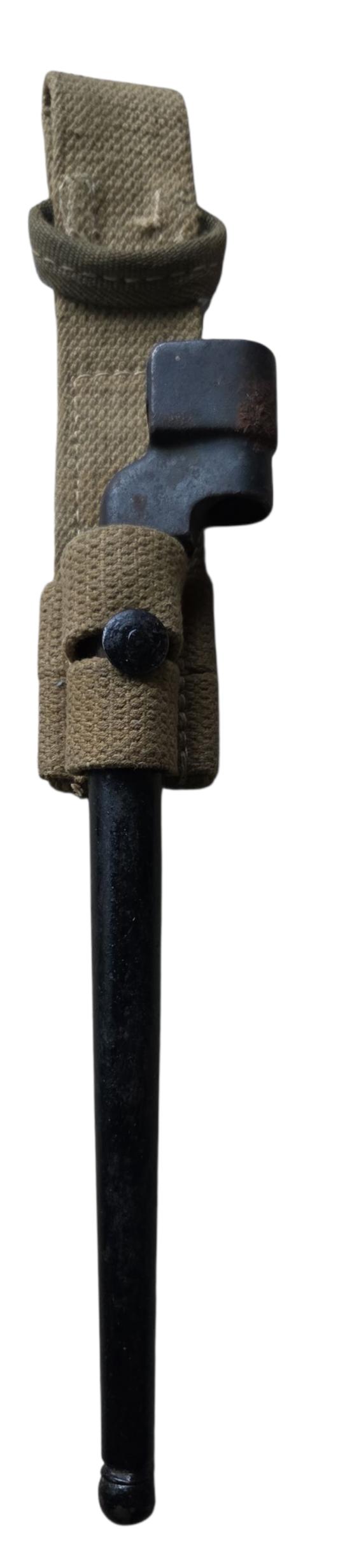 in a nice used condition a British NO 4 Spike Bayonet and a webbing frog no marker of date present very nice for display