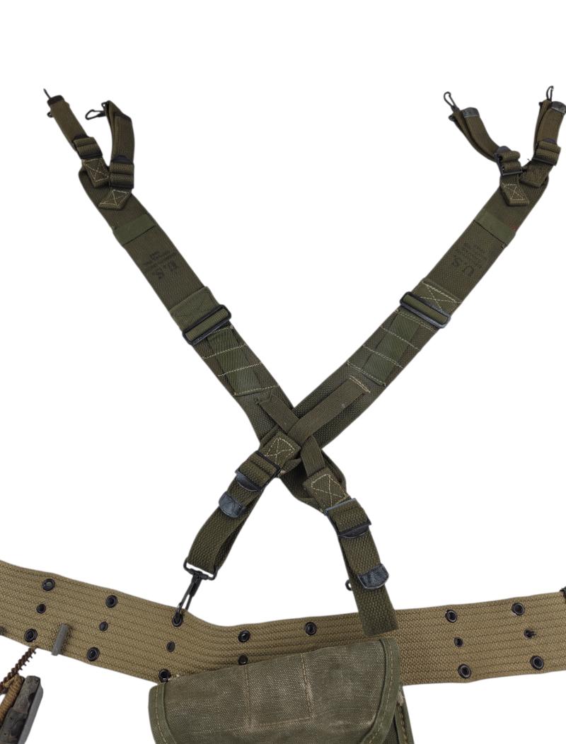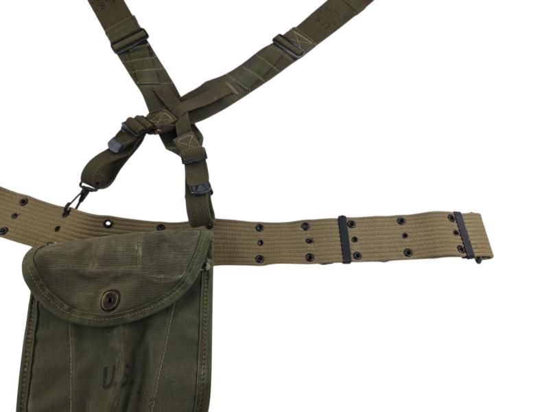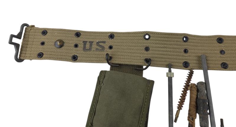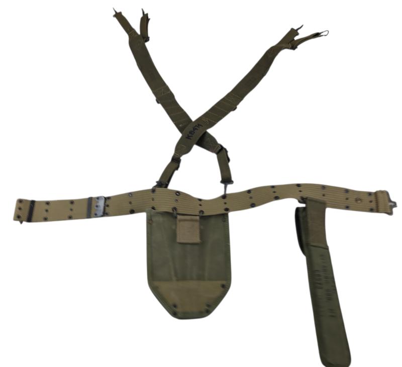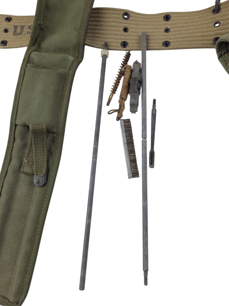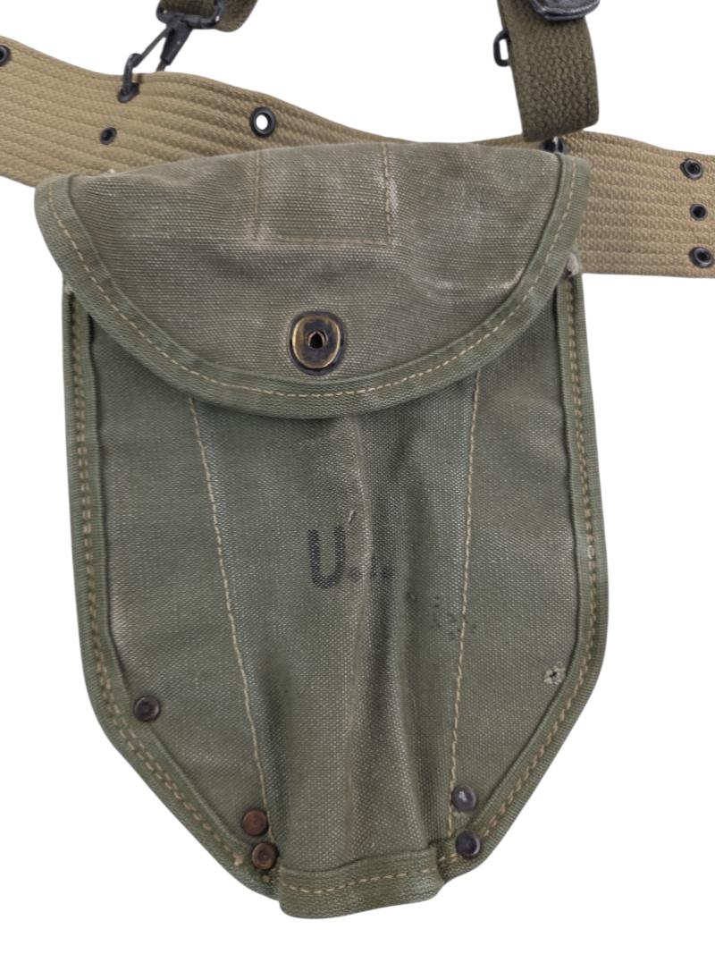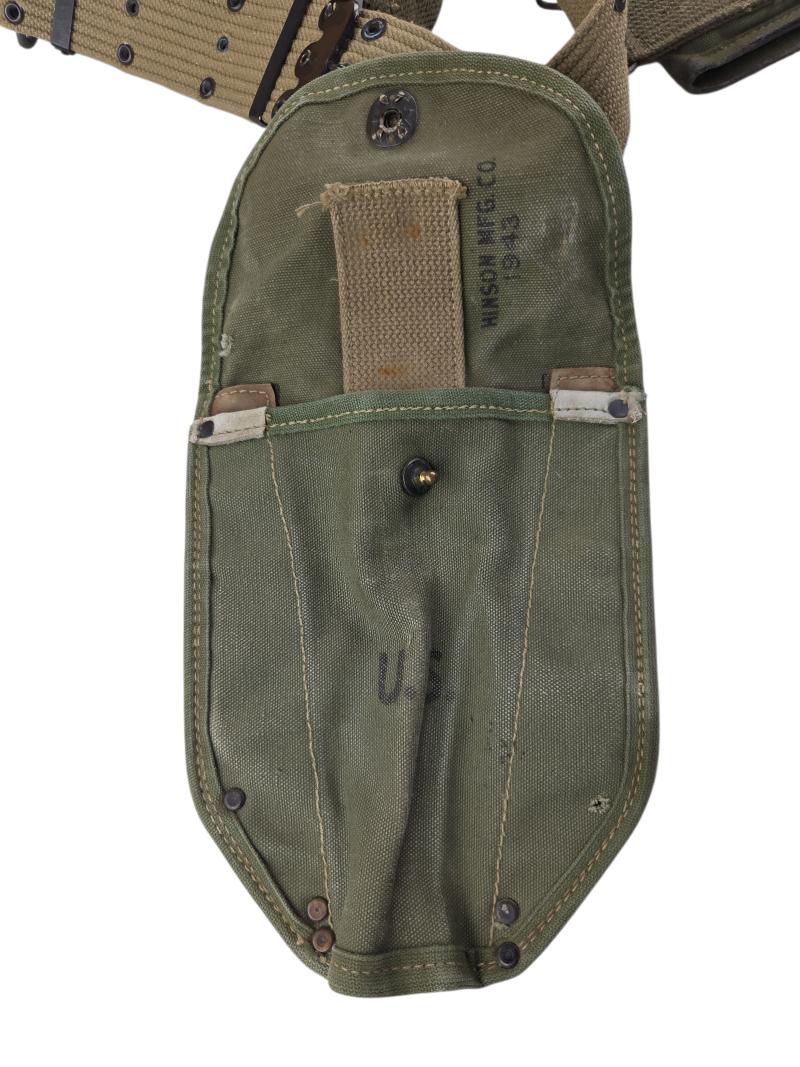 with a Pistol Belt un marked/date with a cleaning rod m1 marked and dated 43 and a shovel cover date 1943 and marked with hinson mfg.co and suspenders dated and marked unfortunately not readable very nice set
