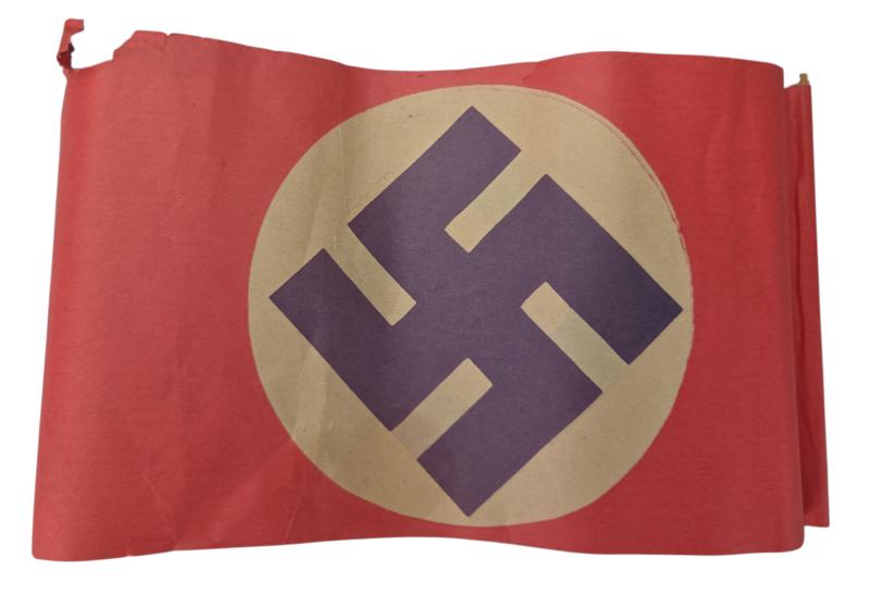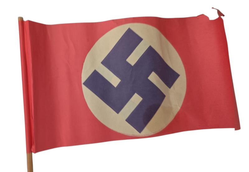 in a heavy used condition a German swastika paper flag on a wooden stick very nice for display