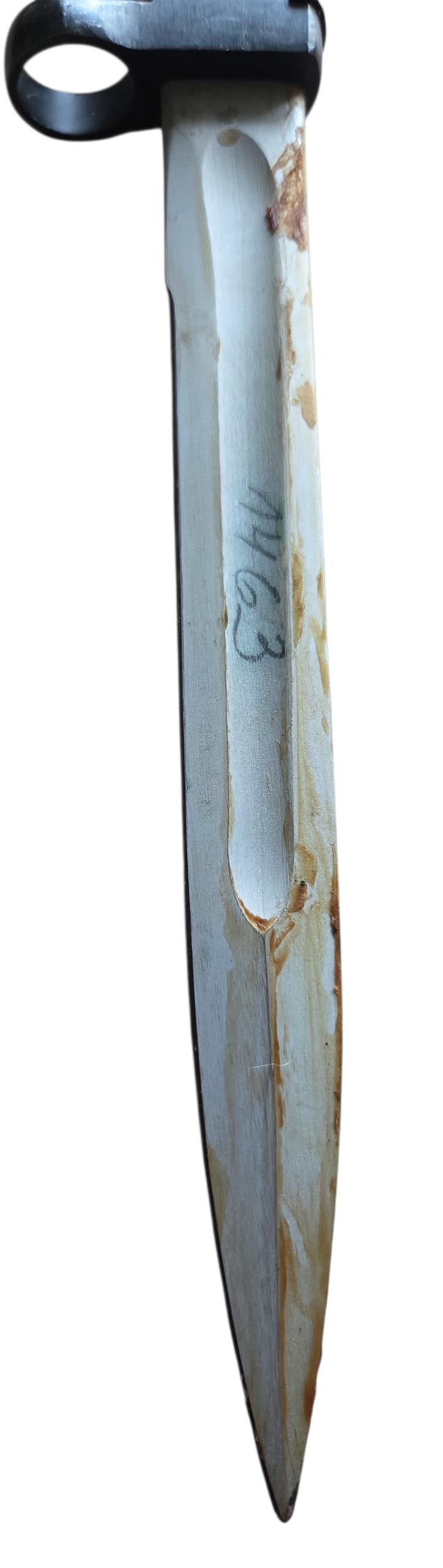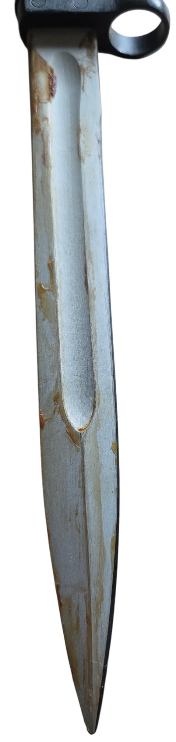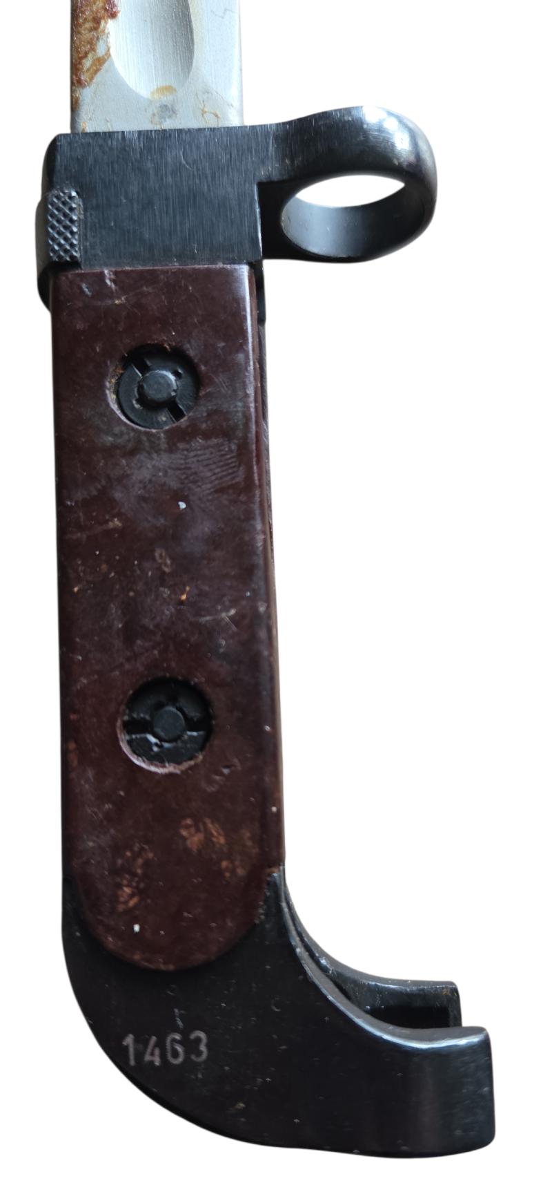 n a nice used condition a cold war ak47 bayonet There's a number in it "1463." The push button doesn't close in my opinion. Very nice for display