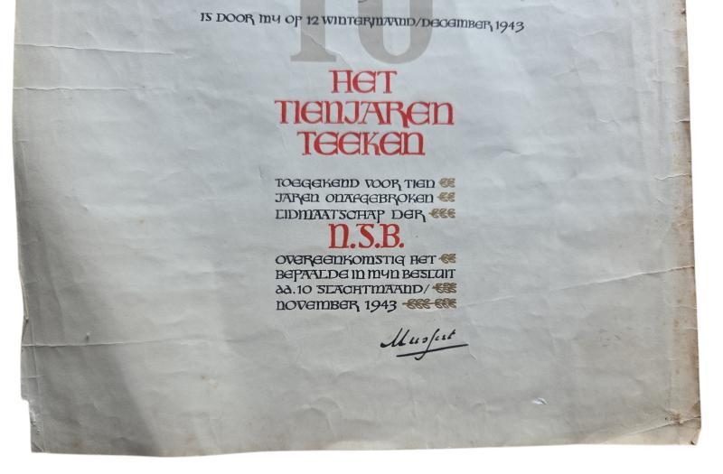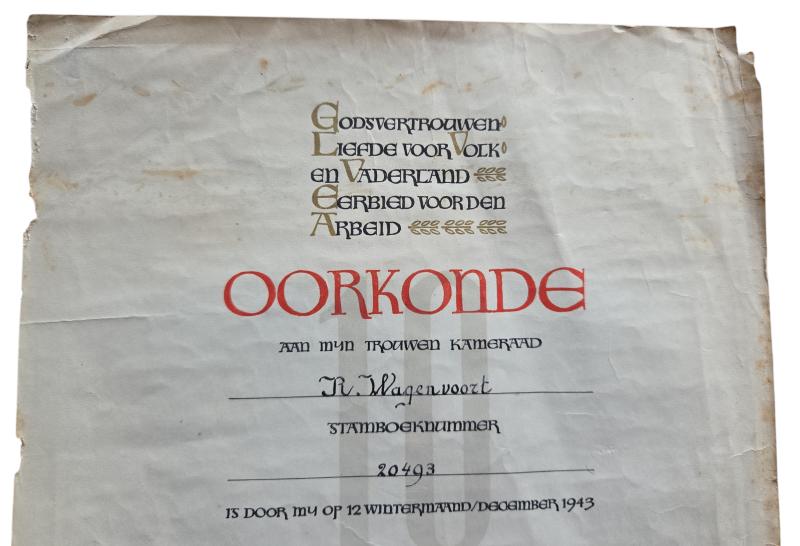 in a used condition a rare WWII Dutch NSB 10-year membership certificate in the name of "R. Wagenvoort" very nice for display