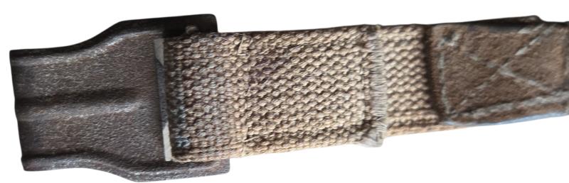 Very nice used condition original Wehrmacht short gas mask canister strap. Correct WWII-period construction. The strap shows light, honest wear consistent with age and service use. Button is missing, otherwise a solid example.