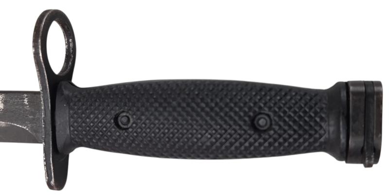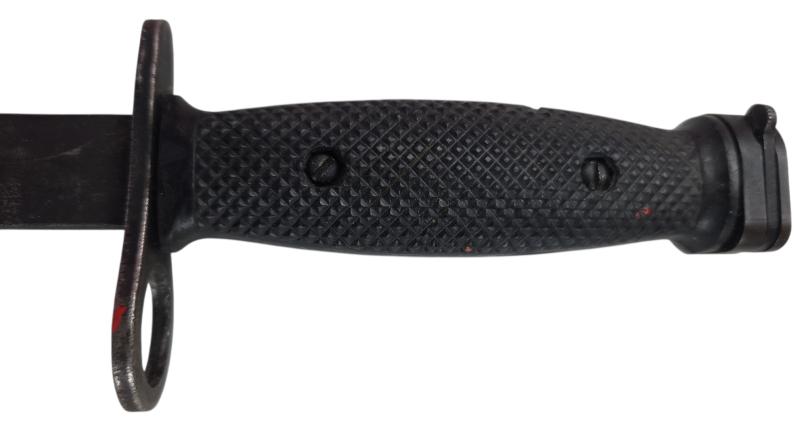 Original M7 bayonet designed for the M16 assault rifle. The bayonet is in used condition, showing normal signs of age and service. Some red paint is present on the blade. Overall a solid example, very nice for display or a Vietnam War collection.