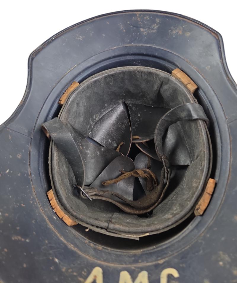 very nice used black gladiator type luftschutz helmet. with its Original liner and leather helmet strap