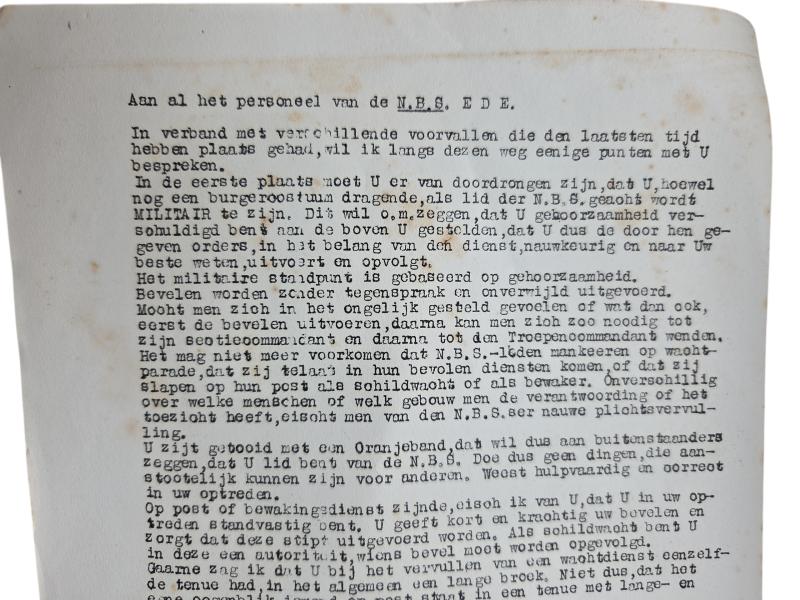 in a used condition a Dutch letter from the Nbs from May 1945 from Ede that everyone must behave like a soldier and listen to their superior very nice for display