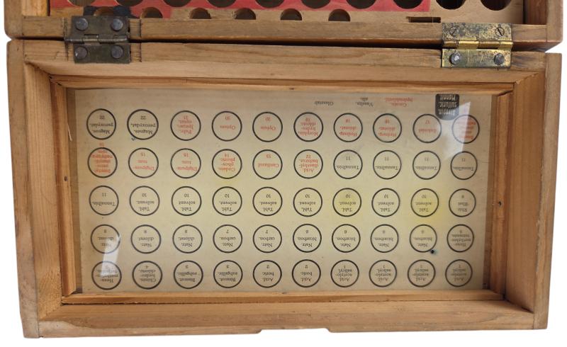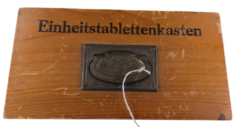 in a very nice used cndition a wehrmacht medical einheitstablettenkasten with original interior and the content sticker in my opinion they glued the rack great for display