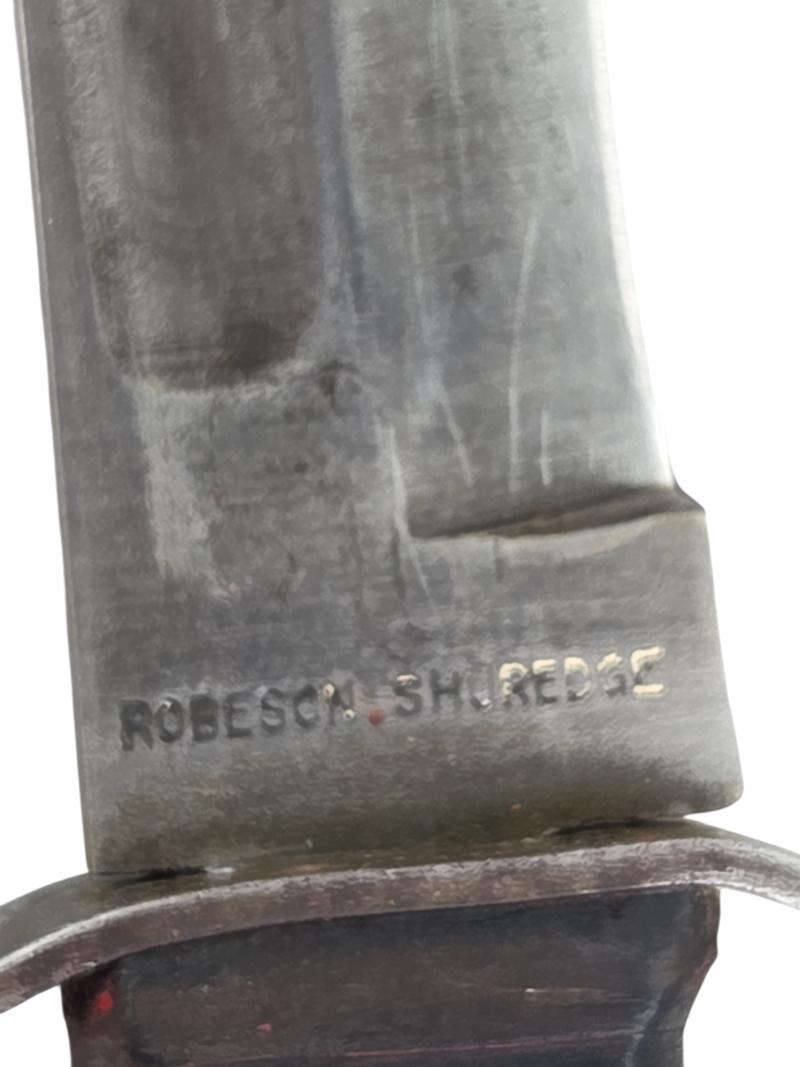 in a very nice used condition a WWII Robeson ShurEdge USN Mark 2 Fighting Knife in avery nice used condition It is only sent to persons aged 18 and older and only within Europe.