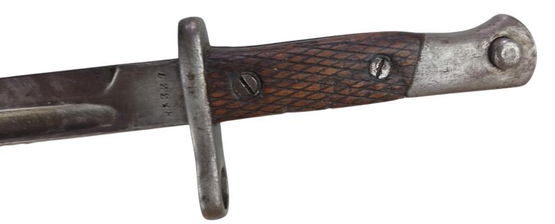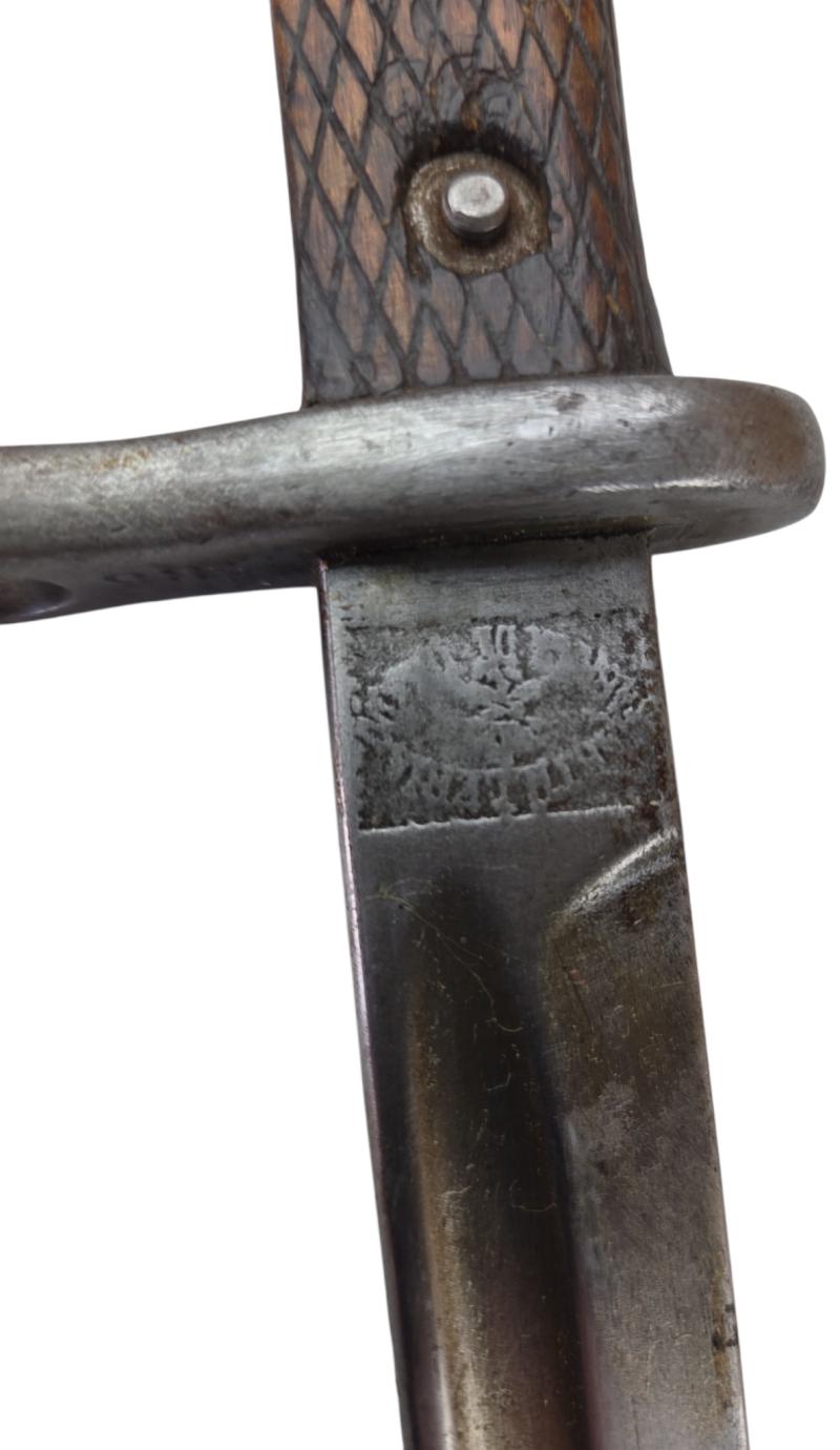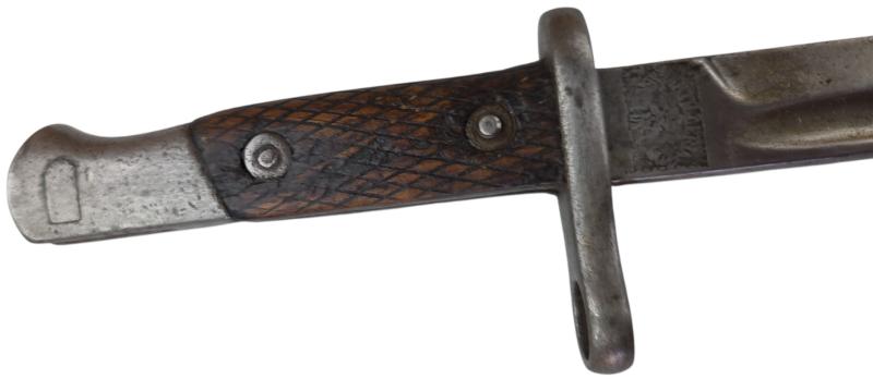 in a nice used condition A Spanish WWI M1913 bayonet for the 7mm 1916 rifle. In my opinion, the marker is Artilleria Toledo, in nice used condition.