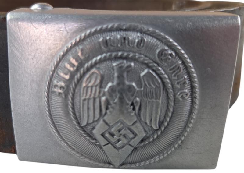 in a nice used condition a Hitlerjugend buckle and belt the buckle is marked with( RZM M4/38 Richard Sieper & Sohne) The belt is marked but difficult to read.very nice set 105 cm very nice for display